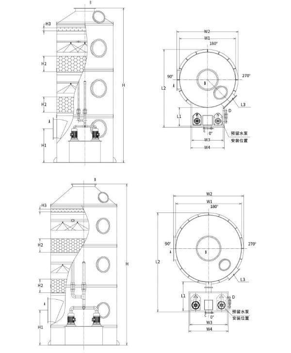 ประเภทที่ 2: เครื่องฟอกสเปรย์บรรจุถังเก็บน้ำแบบแยกส่วน (เส้นผ่านศูนย์กลางทาวเวอร์: Φ2500มม.–Φ3500มม.)