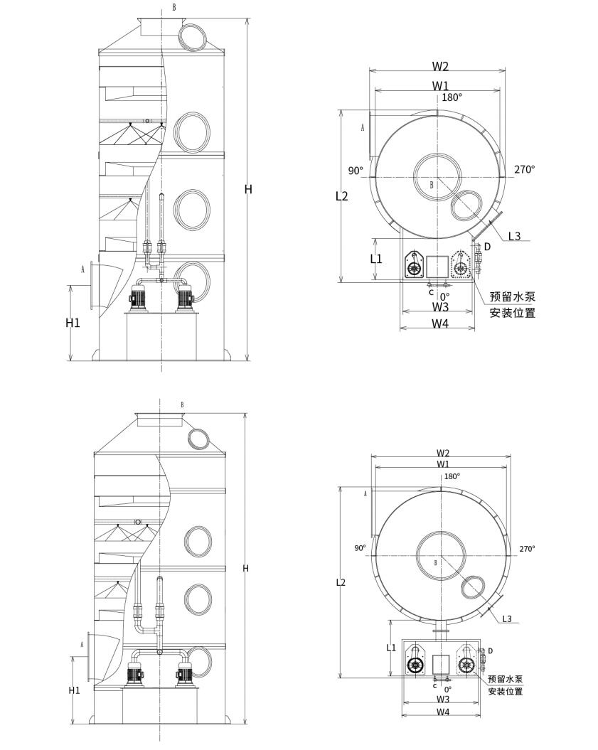 | เอ็กแอล-3200 | 68000-78000m³/ชม | Φ3200×8000 | 15กิโลวัตต์ | 2 | 2.35-2.7ม./วินาที | PP/304/Q235/ไฟเบอร์กลาส |
